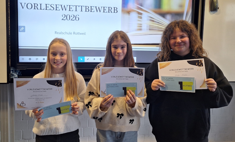 Denise, Lucia und Mayla haben den diesjährigen Schulentscheid des Vorlesewettbewerbs gewonnen und die Jury mit ihrem Vorlesen begeistert.